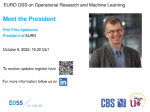 EURO – The Association of European Operational Research Societies has a new instrument: the EURO Online Seminar Series (EURO OSS), and this is the page of the EURO OSS on Operational Research and Machine Learning, with website https://euroorml.euro-online.org/ and link to register to the mailinglist at https://forms.gle/YWLb6EPKRQnQert68.